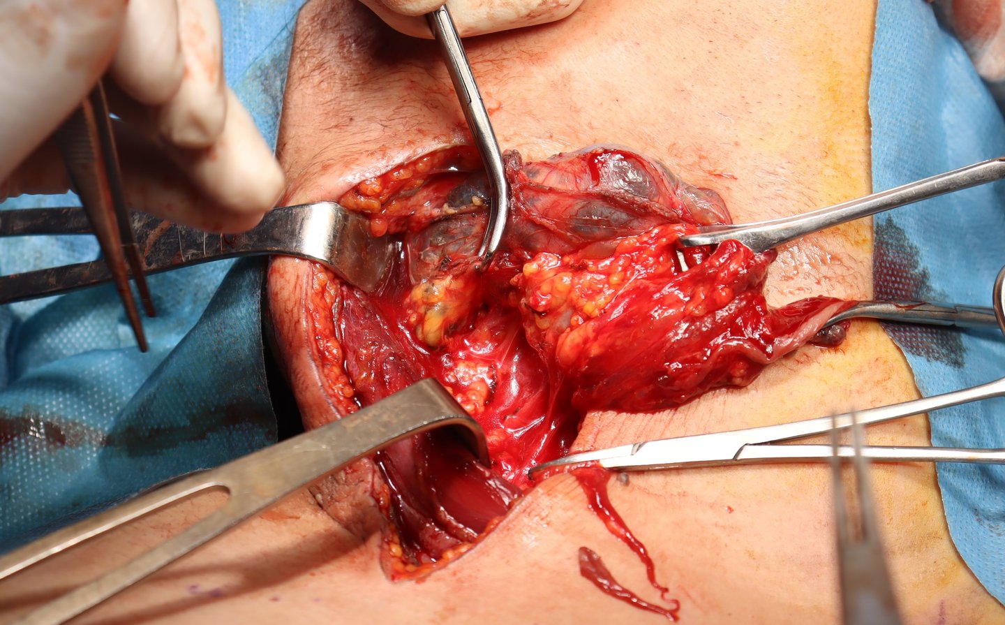Following discussion at the multidisciplinary tumor board (MDT), the decision was made to proceed with surgical excision of the mass due to its size, progressive enlargement, and compressive effects. The patient underwent right-sided neck lymphangioma excision under general anesthesia. The procedure was uneventful, and all visible cystic tissue was completely removed.